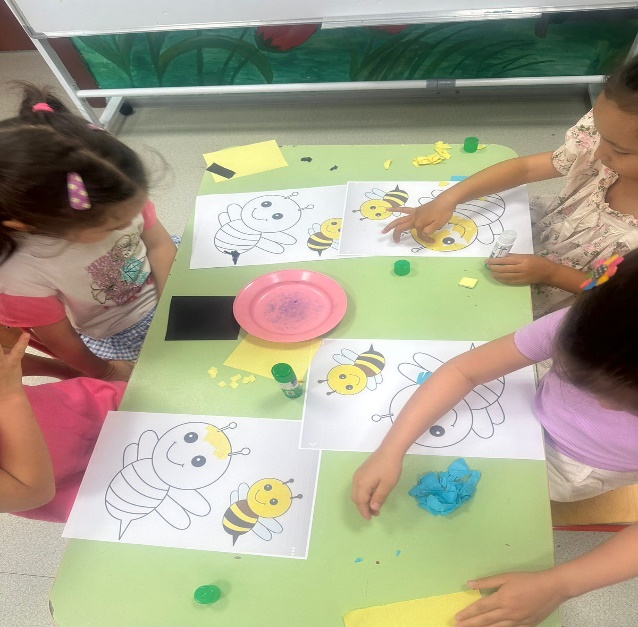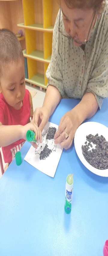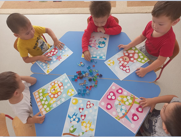 Құлпырған әлем» шығармашылық шеберханасының жұмысын ұйымдастыру, балалардың қалауы бойынша жеке немесе топтасып, әртүрлі материалдардың көмегімен бұйымдар жасауларына ерік беру. Педагог бақылап, қажет болса көмек көрсетеді (аппликация, оригами, квиллинг, жапсыру және басқа әдістермен). Жұмыстар дайын болғанда көрме ұйымдастыру, бір-біріне және ата-аналарына сыйға тартуға ұсыныс беру.