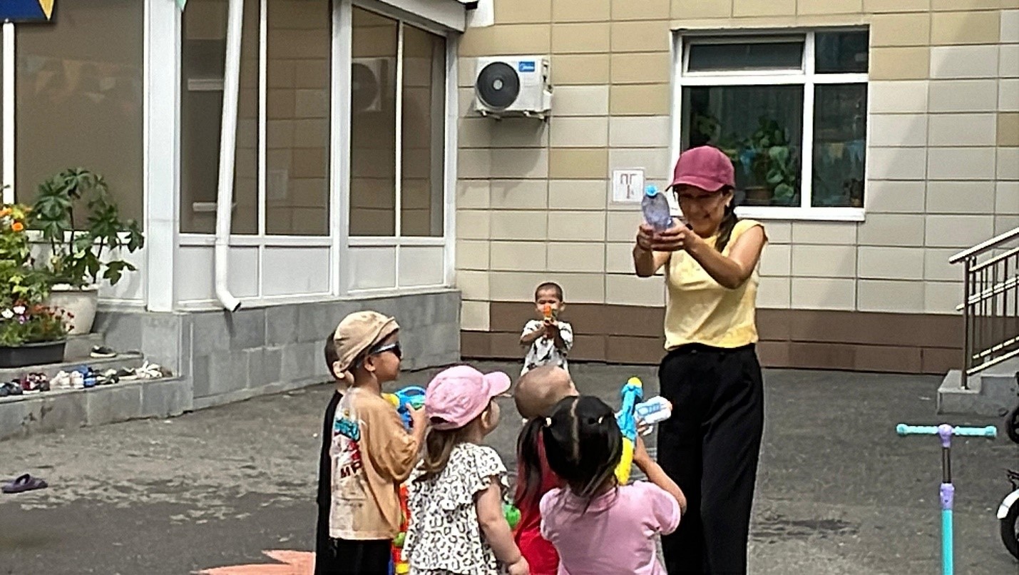 Мақсаты: балаларға су тіршілік көзі екенін үйрету. Сумен ойнайтын ойындардың ережесін сақтай отырып, балалардың қимыл - қозғалысын, икемділігін, шапшаңдығын арттыру. Достыққа және ұйымшылдыққа тәрбиелеу.