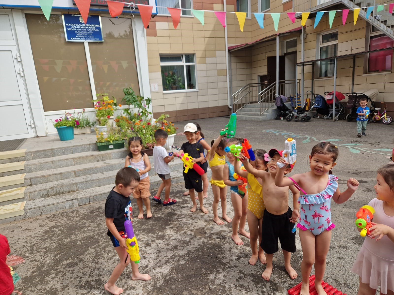 Олар бір-біріне су бүркіп, шелектен құйып, судың температурасы мен қозғалысын сезініп, шаттыққа бөленді.