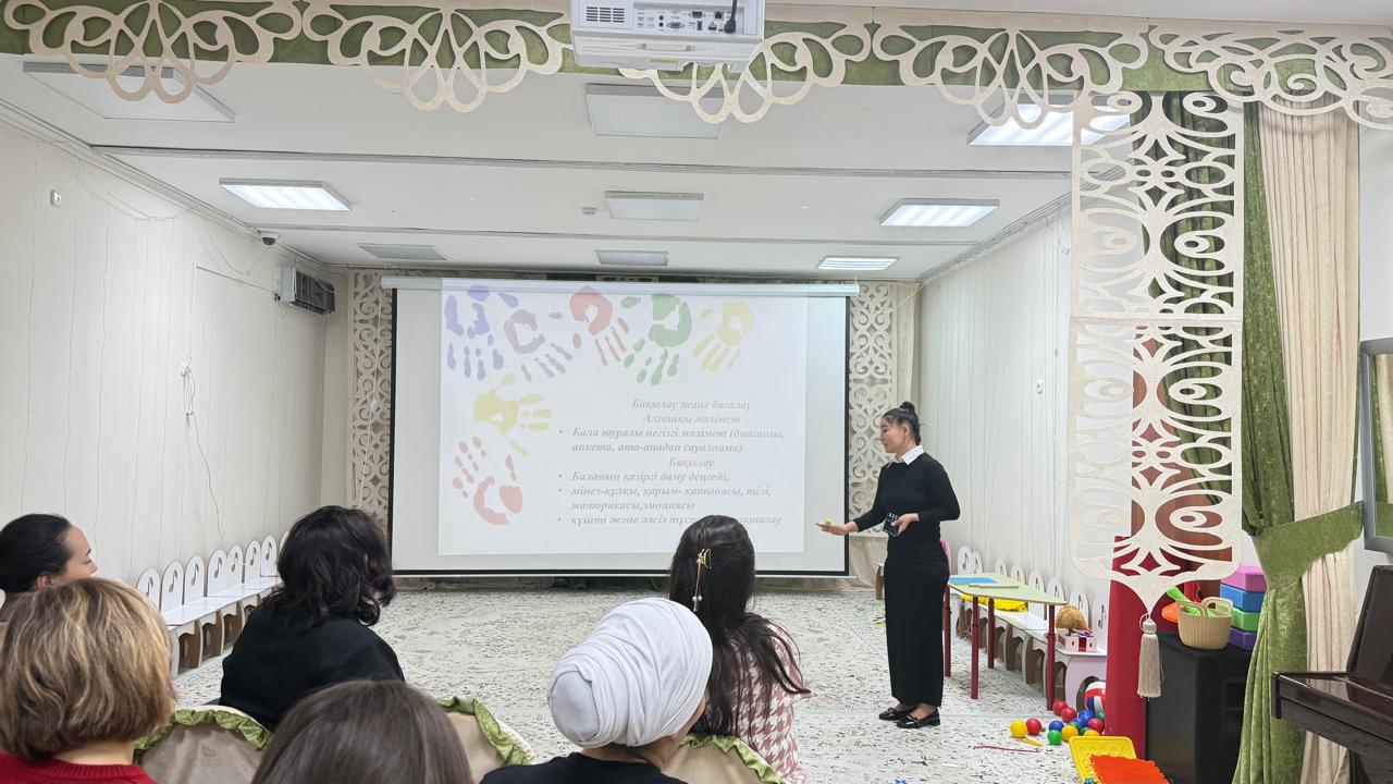 2026 жылдың 22 қаңтар күні балабақшамызда «Мектепке дейінгі жастағы балалардың танымдық қабілеттерін, сөйлеу тілін дамытудың әдіс-тәсілдері» әдіскер С.Сагитова, логопед-дефектолог, педагог-психологтардын, кәсіби деңгейінде ата-аналармен өз тәжірибе шығармашылық ұйымдастырылған іс әрекеттерімен бөлісті.