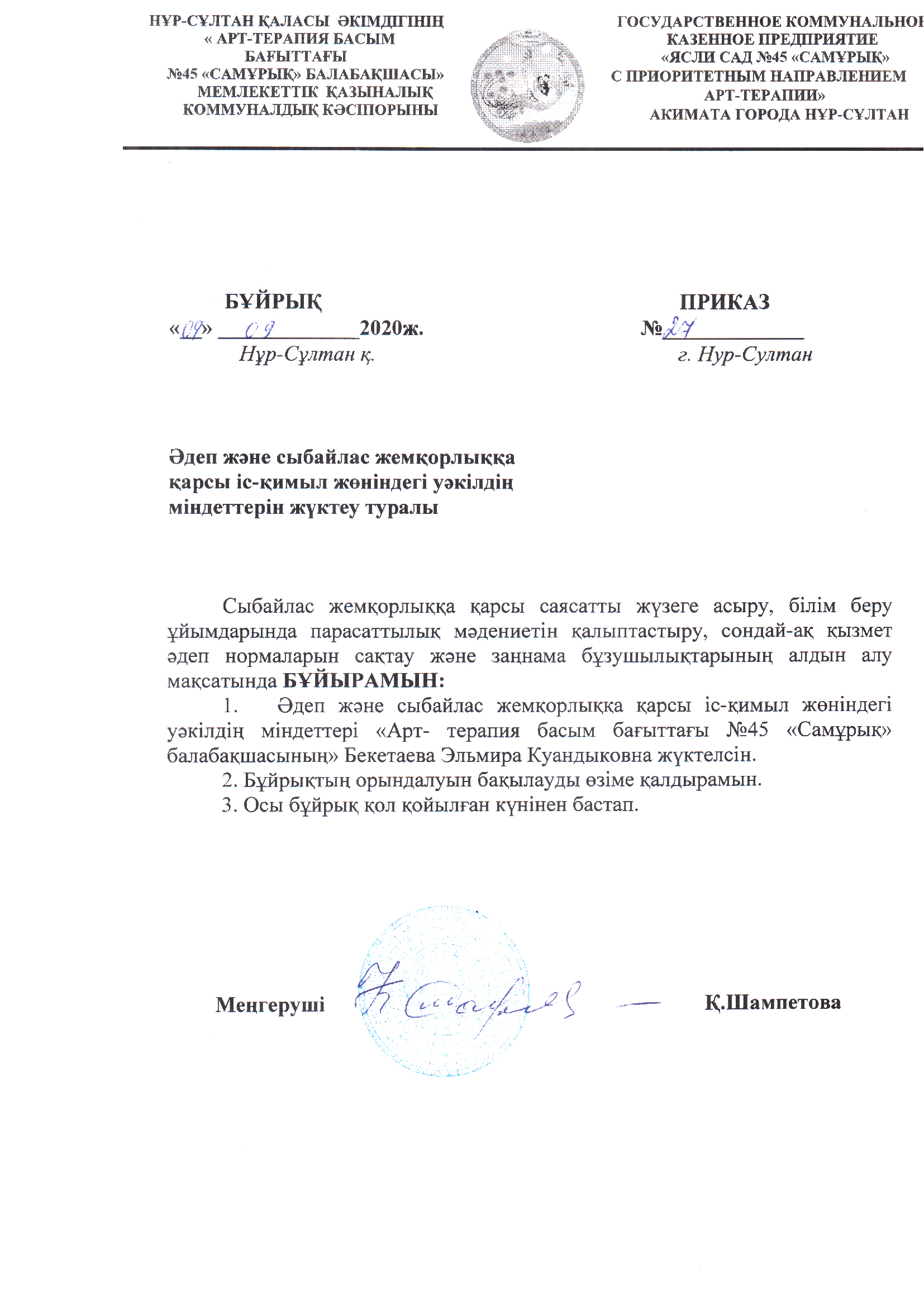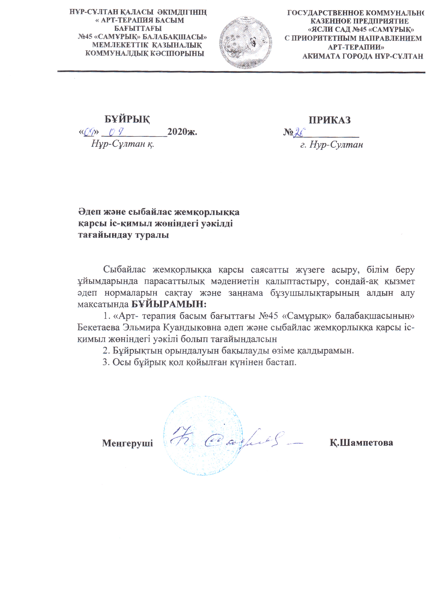 ГККП «Ясли сад №45 «Самұрық» с приоритетным направлением арт-терапии» акимата города Астаны