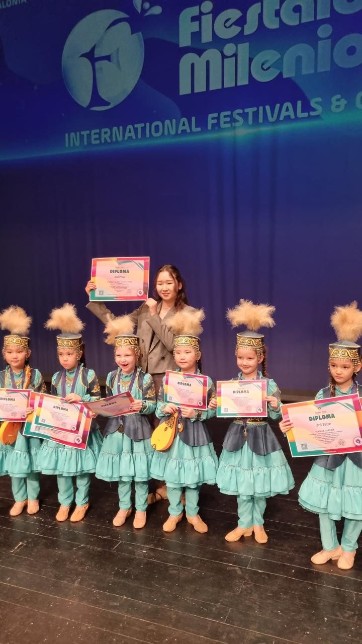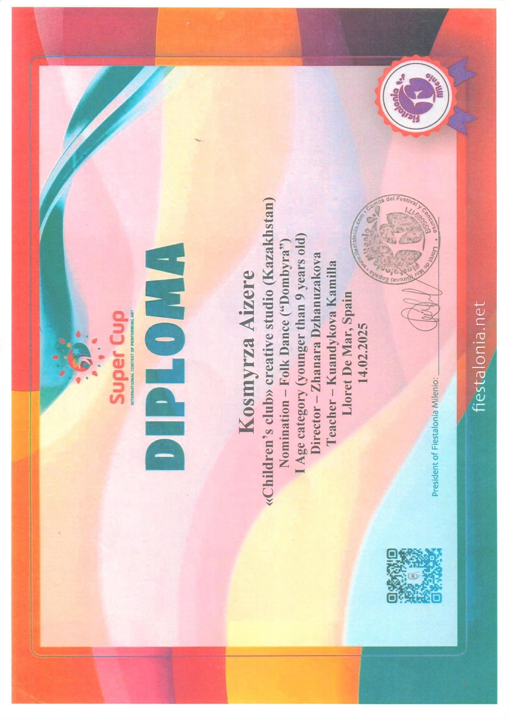 2025 жыл 12-19 ақпанда Испанияның Льорет де мар қаласында өткен халықаралық өнер байқауында “Ерке сылқым” тобының тәрбиеленушісі Қосмырза Айзере 2 орын иеленді. Айзерені таңертең достары күтіп алу сәтінен естелік.